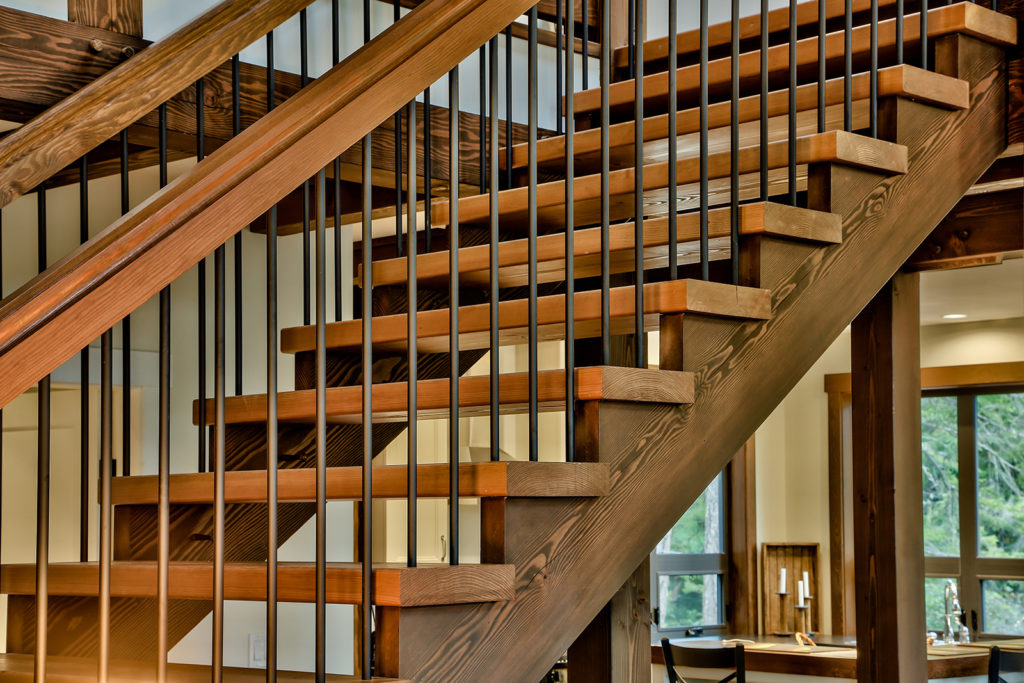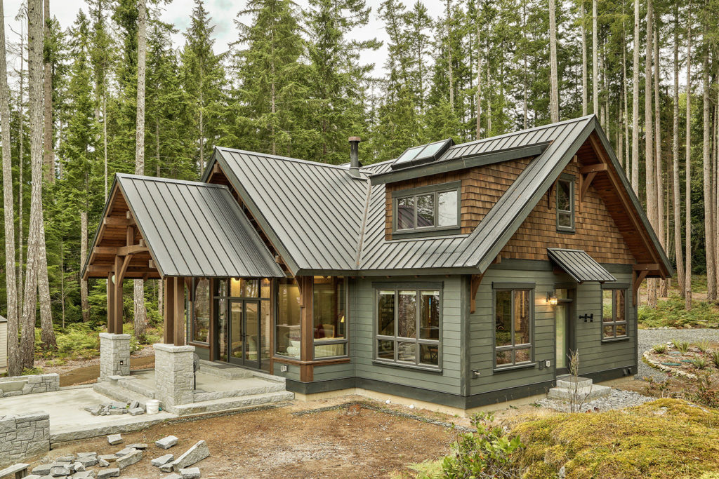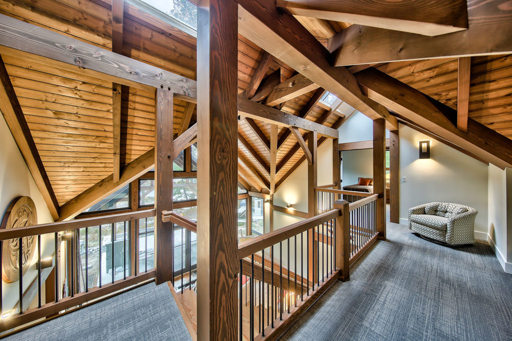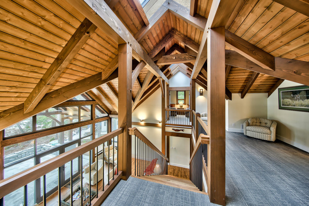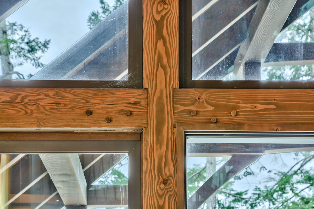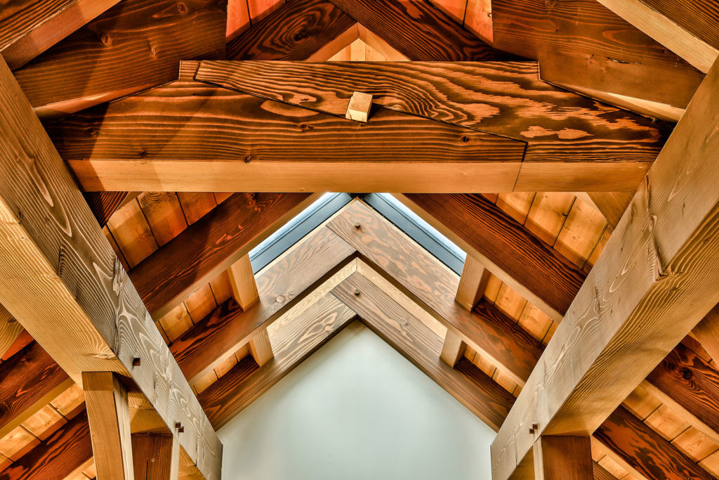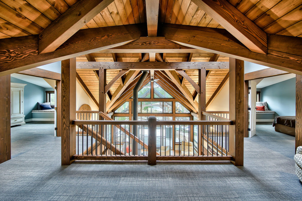 Anyone having the fortune to visit this remote island home would be amazed by the full amenities and creature comforts incorporated into this home. The large covered porch provides plenty of shelter at this often rainy location but still lets in plenty of natural light. The timber-frame is a hybrid approach with timberwork concentrated in the common spaces and private spaces (bedrooms, bathrooms, utility) are conventionally framed. Because of the remote location, erection of the timber frame was completed without the use of a crane. Just ingenuity.