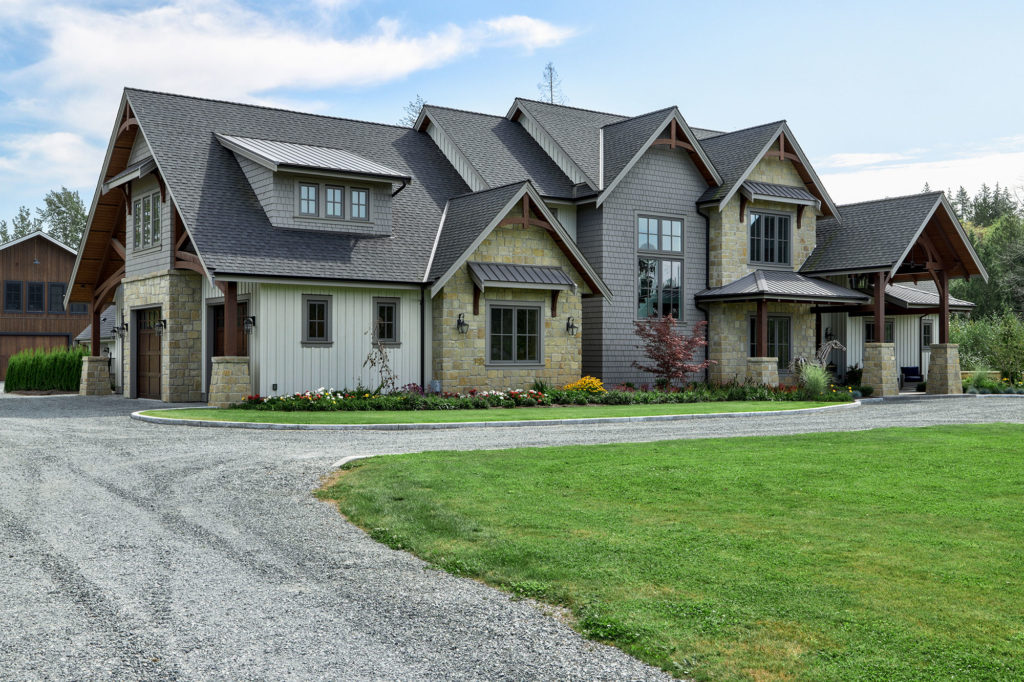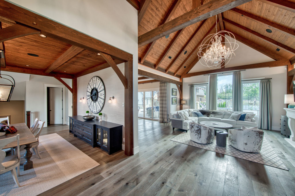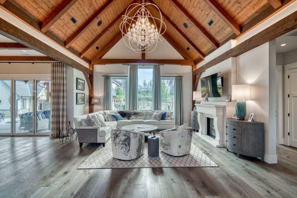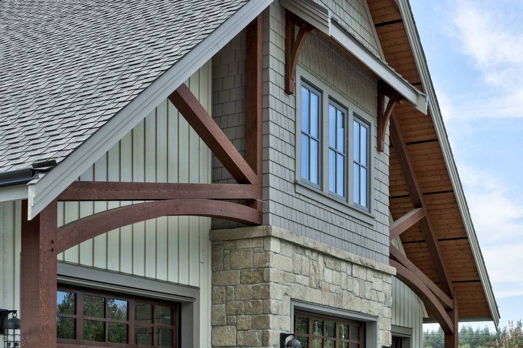 Simple, rugged timberwork in this beautiful country house ties in appropriately with the adjacent barn and equestrian centre. The dark brown stain on the bandsawn timbers really makes the timbers the showpiece of this project. This elegant home truly captures a balance of modern country style with the beautifully designed interior complemented by the rustic appearance of the timber and tongue and groove.