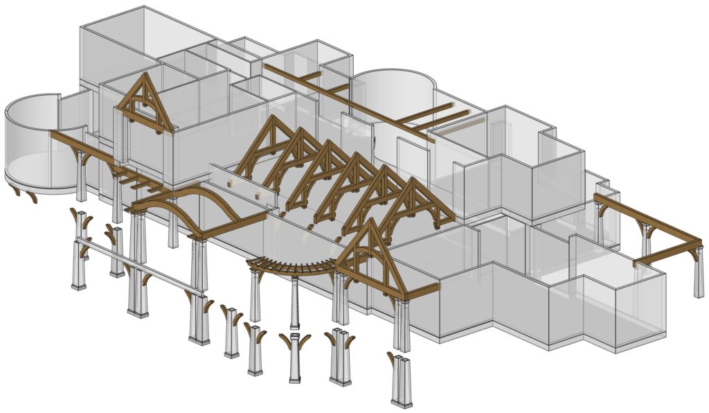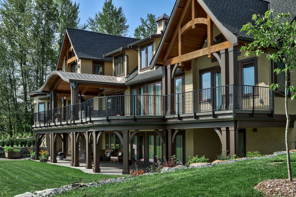 This project incorporated a mixture of timber details from the custom curved ‘eyebrow’ covered porch to the rustic interior and exterior trusses and elegant solid stained timberwork supporting the decks.