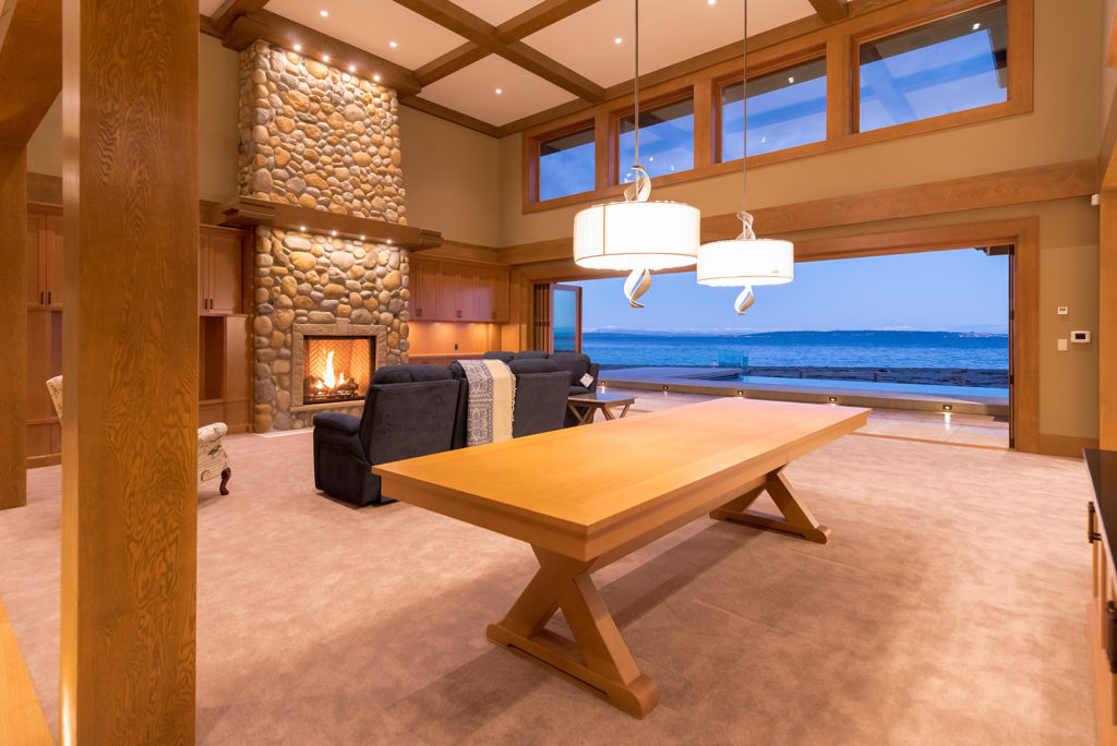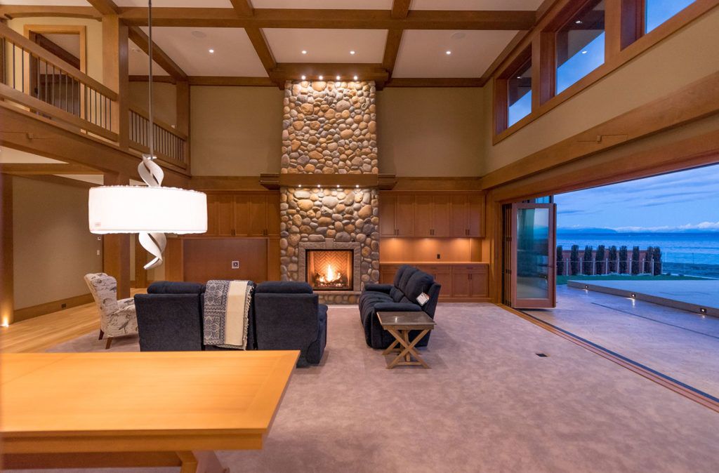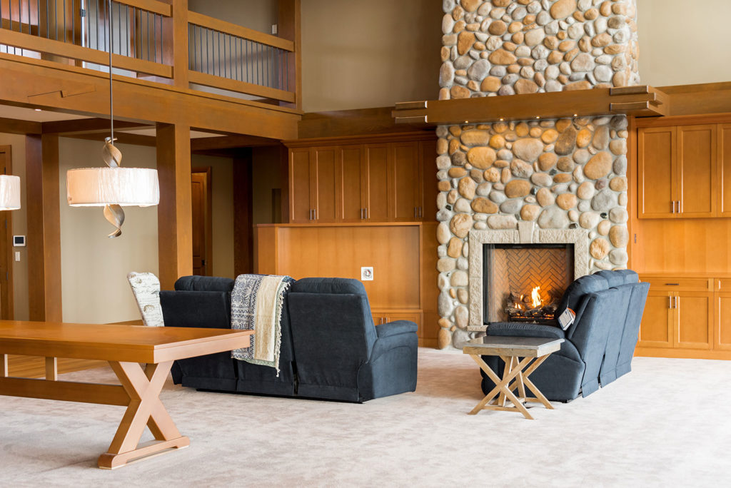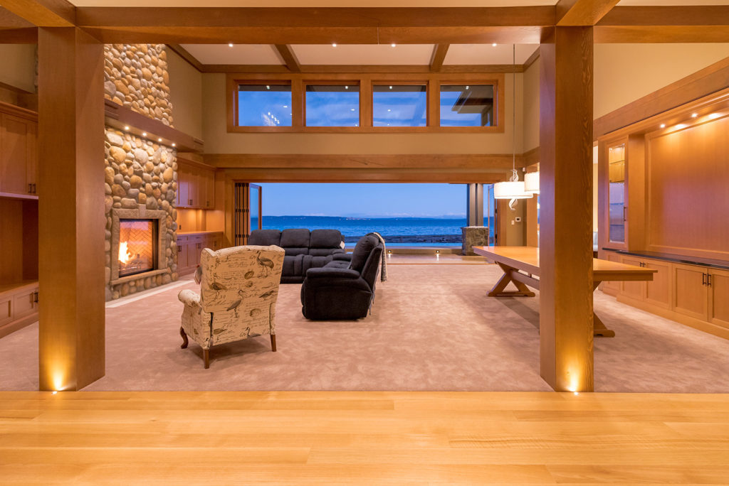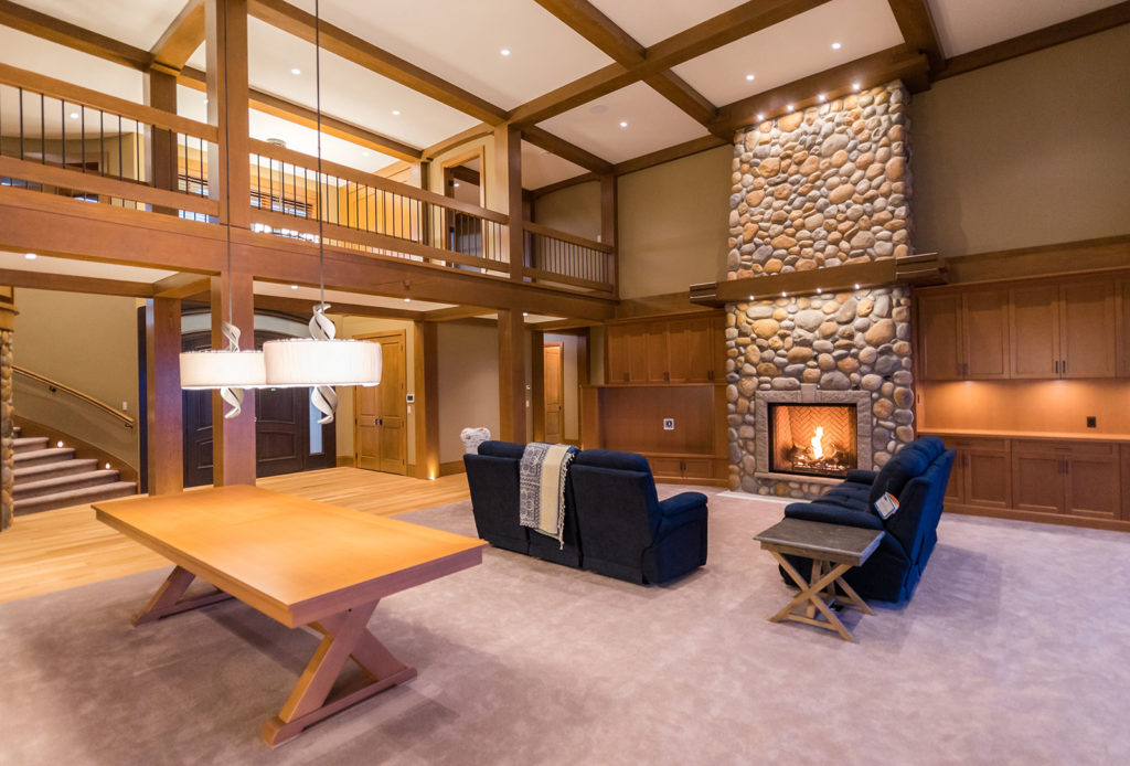This project presented an interesting challenge for Kettle River. The project was designed with exposed-timber structure. Unfortunately, the initial framers installed timbers that were too small and poor quality for such a significant home. Our solution was to ‘wrap’ and mitre all the timbers with quality timber material. This solved 2 problems, first, it made the timber work in appropriate scale with the house and second, it raised the timber quality to a suitable architectural level. In addition, Kettle River detailed and installed the curved railings and balustrade.