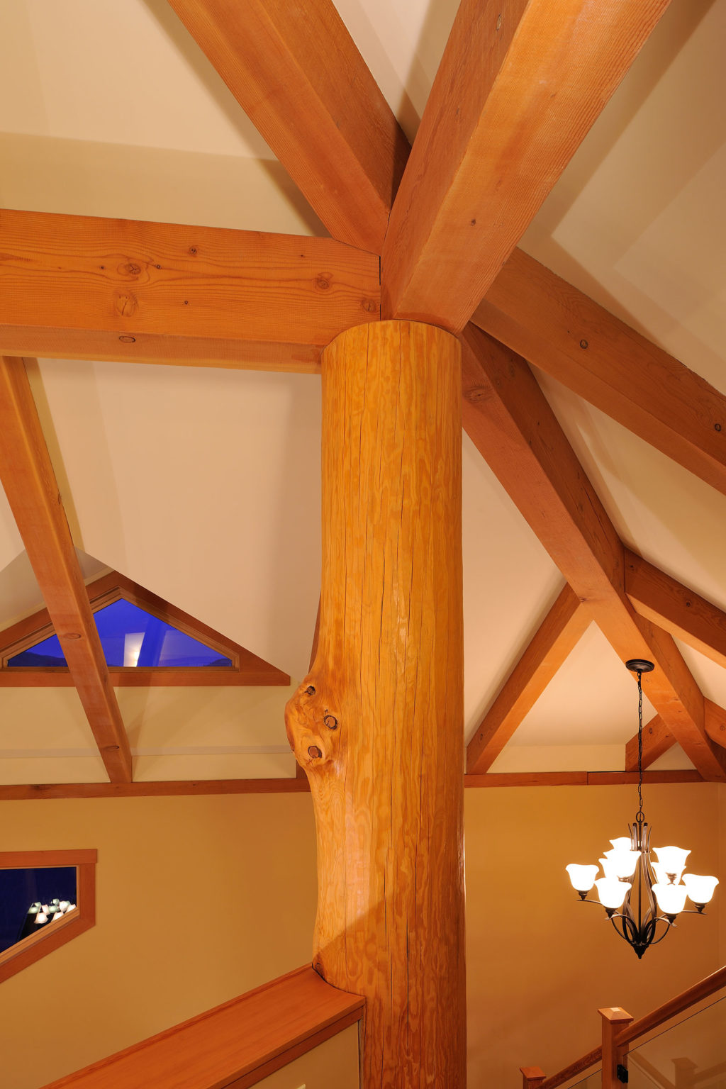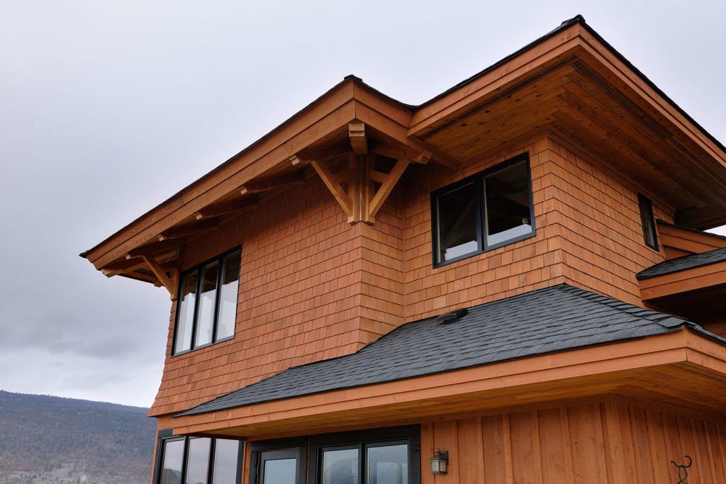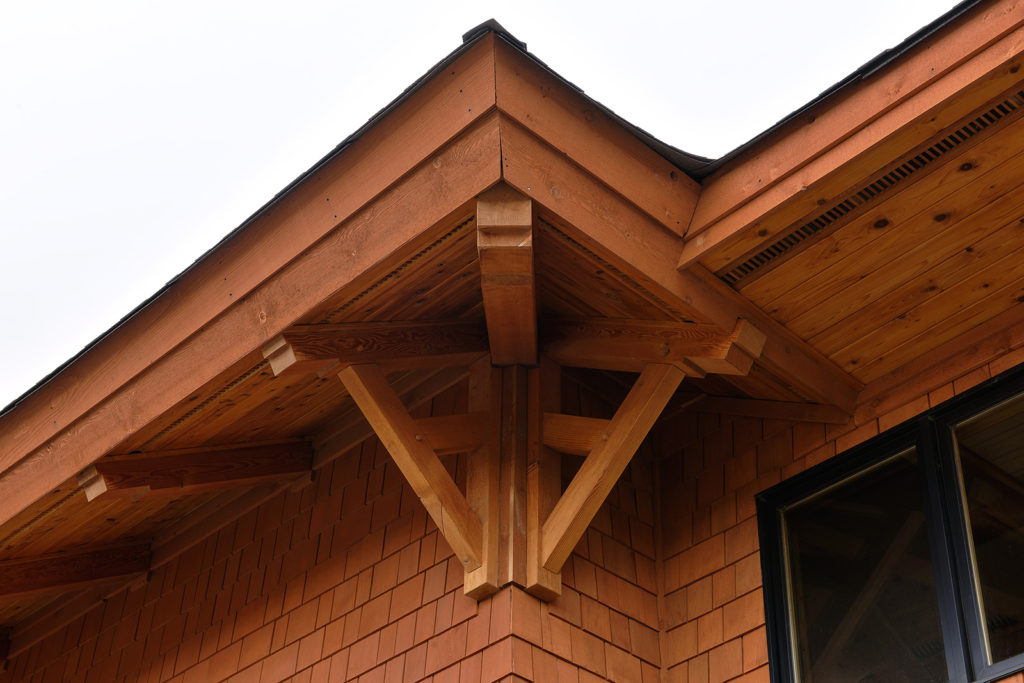 This lovely home was one of Kettle River Timberworks’ first projects, which makes it pretty special. The crew at Kettle River crafted local pine logs with kiln dried Douglas fir timbers to create this dramatic roofline. The entire roof was pre-assembled in one piece and lifted into place in one afternoon. After which, our gracious clients rolled out a raising party for the crew.
