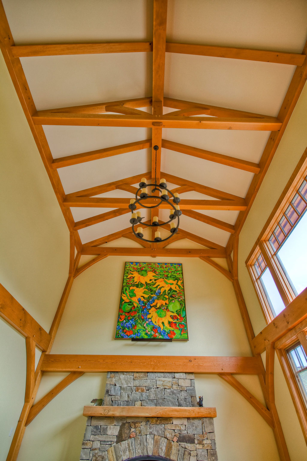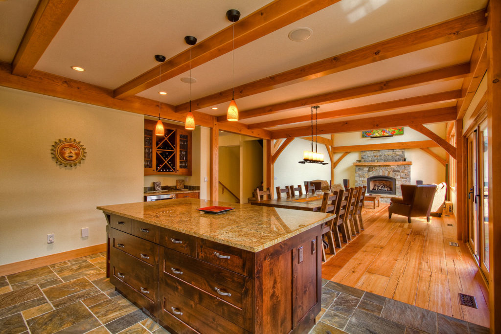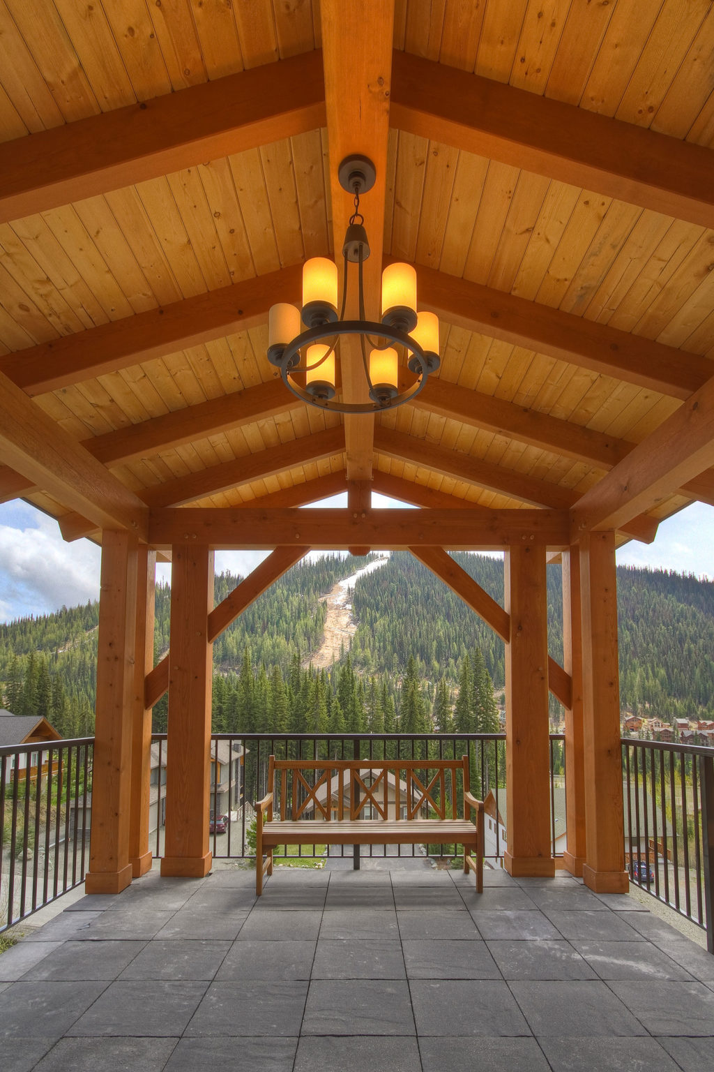 Breathtaking views and an elegant combination of stonework and timber, make this timber frame mountain retreat one of Kettle River Timberworks’ finest custom projects. Working closely with the architect, client and general contractor, the Kettle River team overcame the challenges of a difficult building site to create this stunning home.