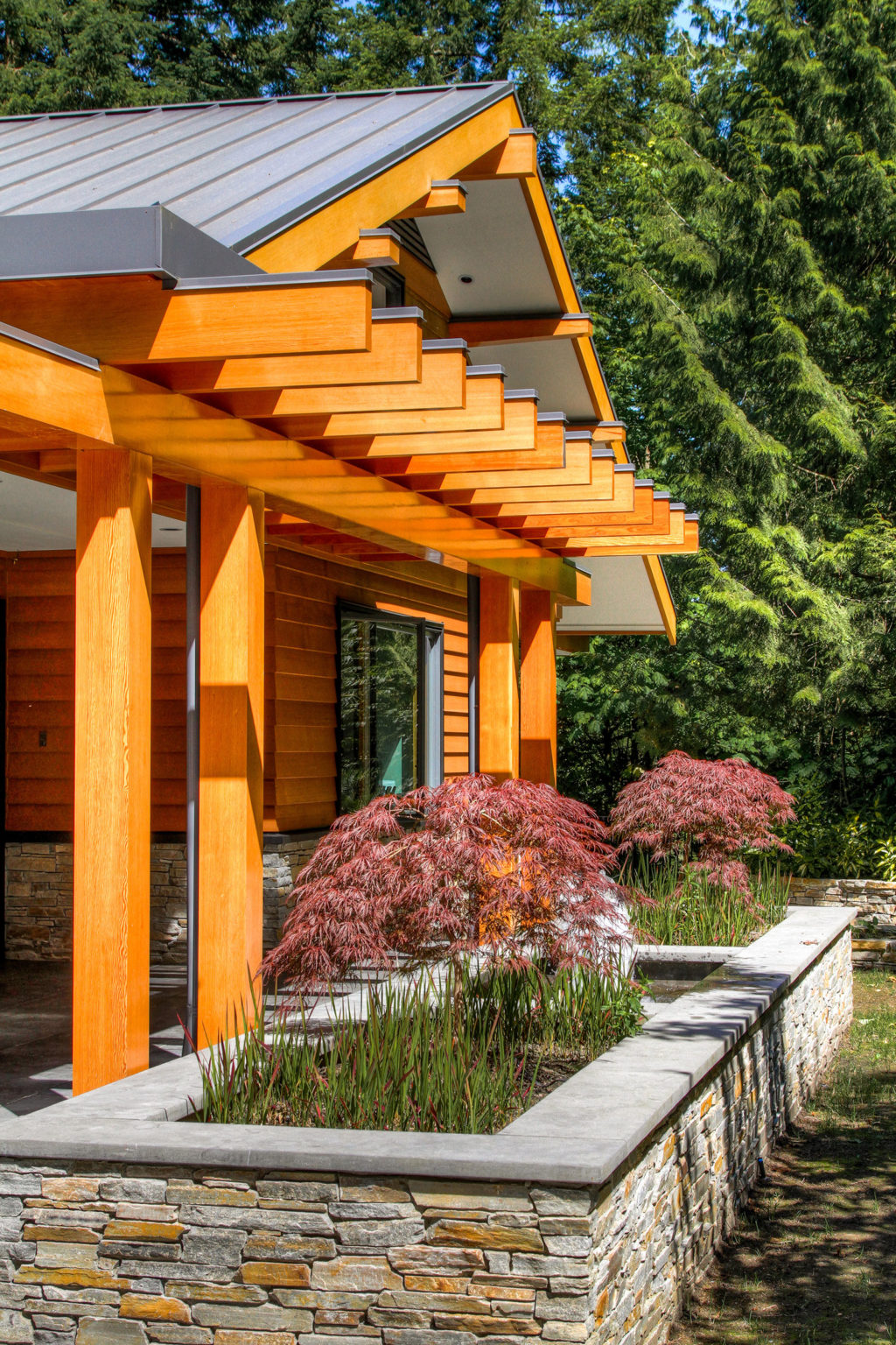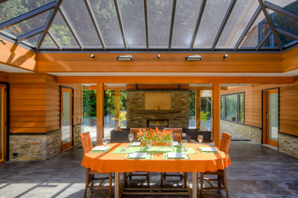 Believe it or not, this project was a renovation. The level of finish on the timberwork on this project exceeded anything the crew at Kettle River Timberworks had worked on before. The timbers were near perfect clear Douglas fir, sanded to a microfinish and sealed with 6 coats of marine epoxy. The joinery was designed to be clean and discrete using hidden steel fasteners. Our clients wanted to build something that was highly refined but not ostentatious; a place to raise their family and entertain friends.